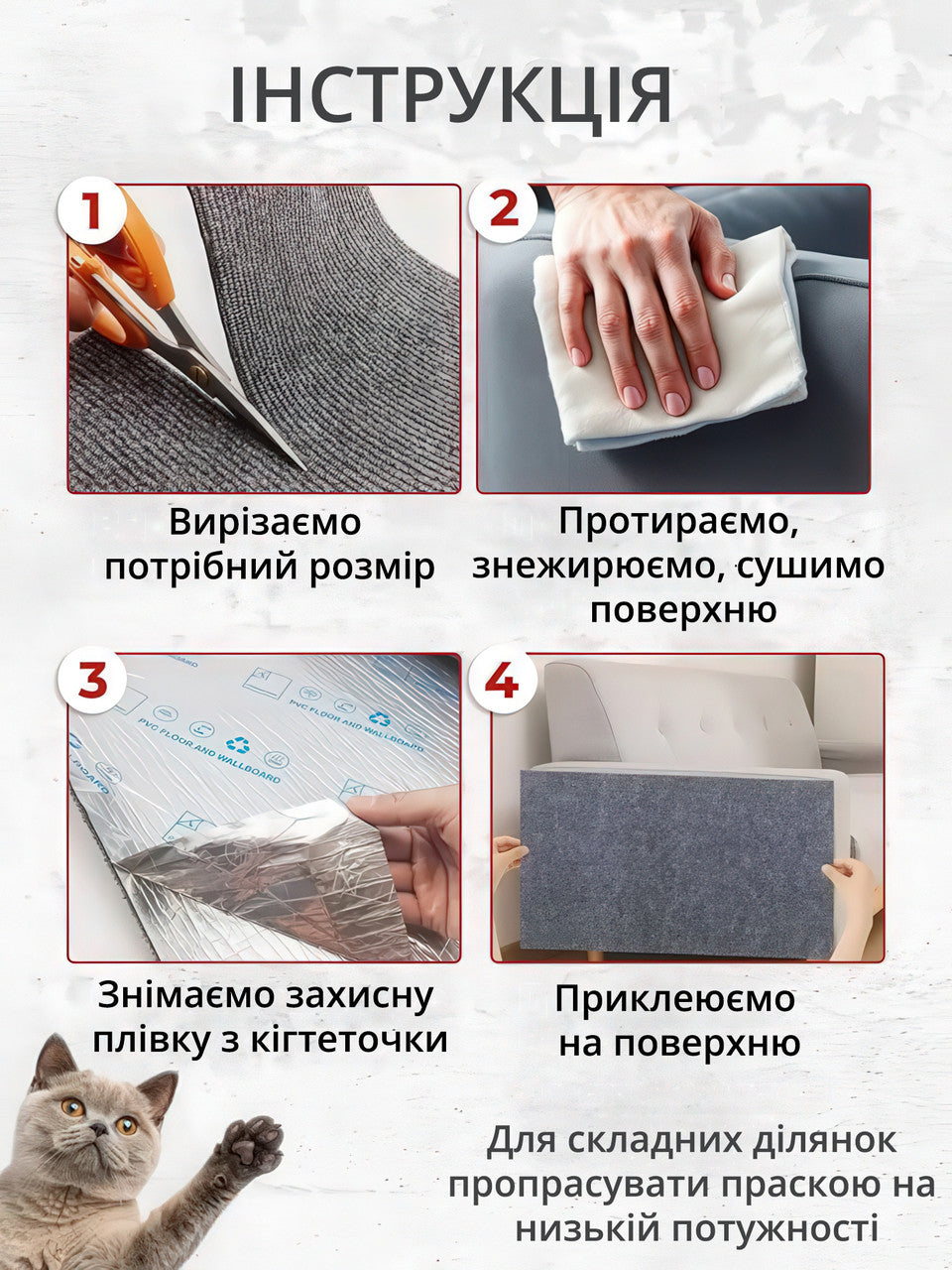Кігтеточка килимок самоклейна для котів і собак - захист меблів від подряпин 40×100 см