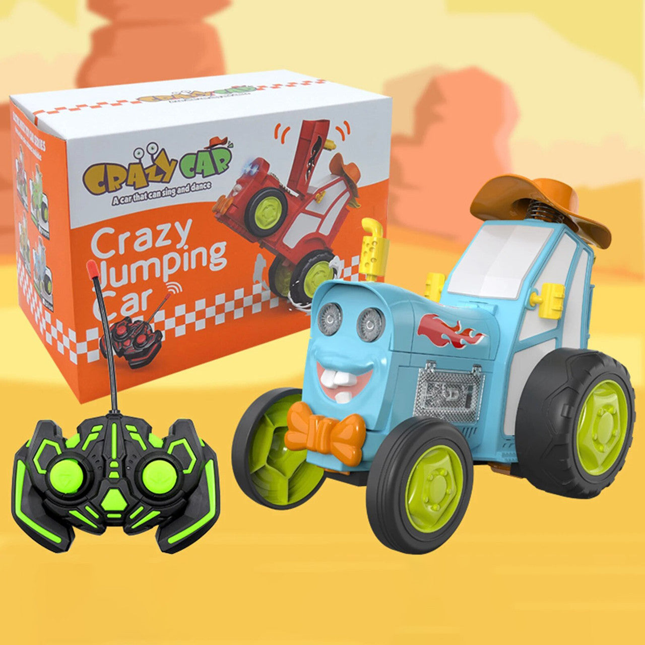 Збільшити кількість для Трактор на радіокеруванні танцюючий стрибаючий зі звуковими ефектами "Crazy Jumping Car" блакитний