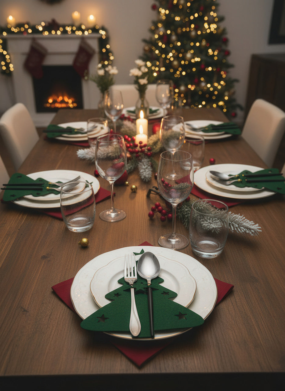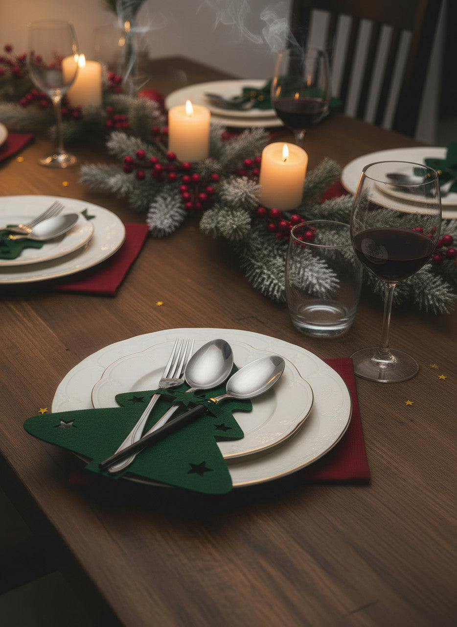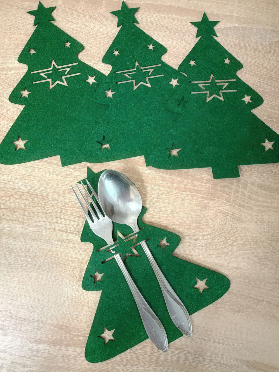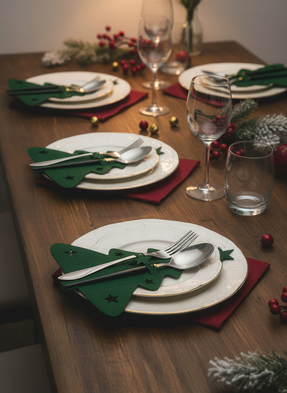 Сервірувальні конверти для столових приборів із фетру "Ялинка" 21×17 см, набір 12 штук, зелені