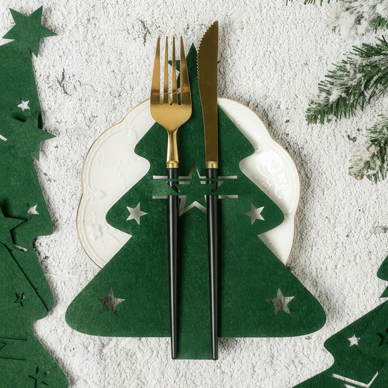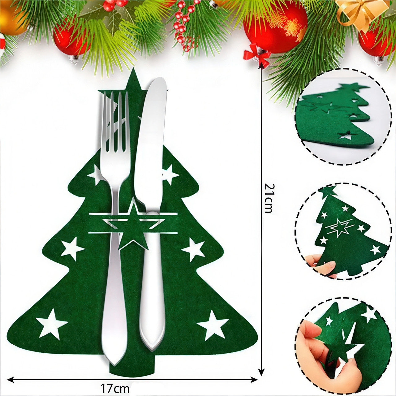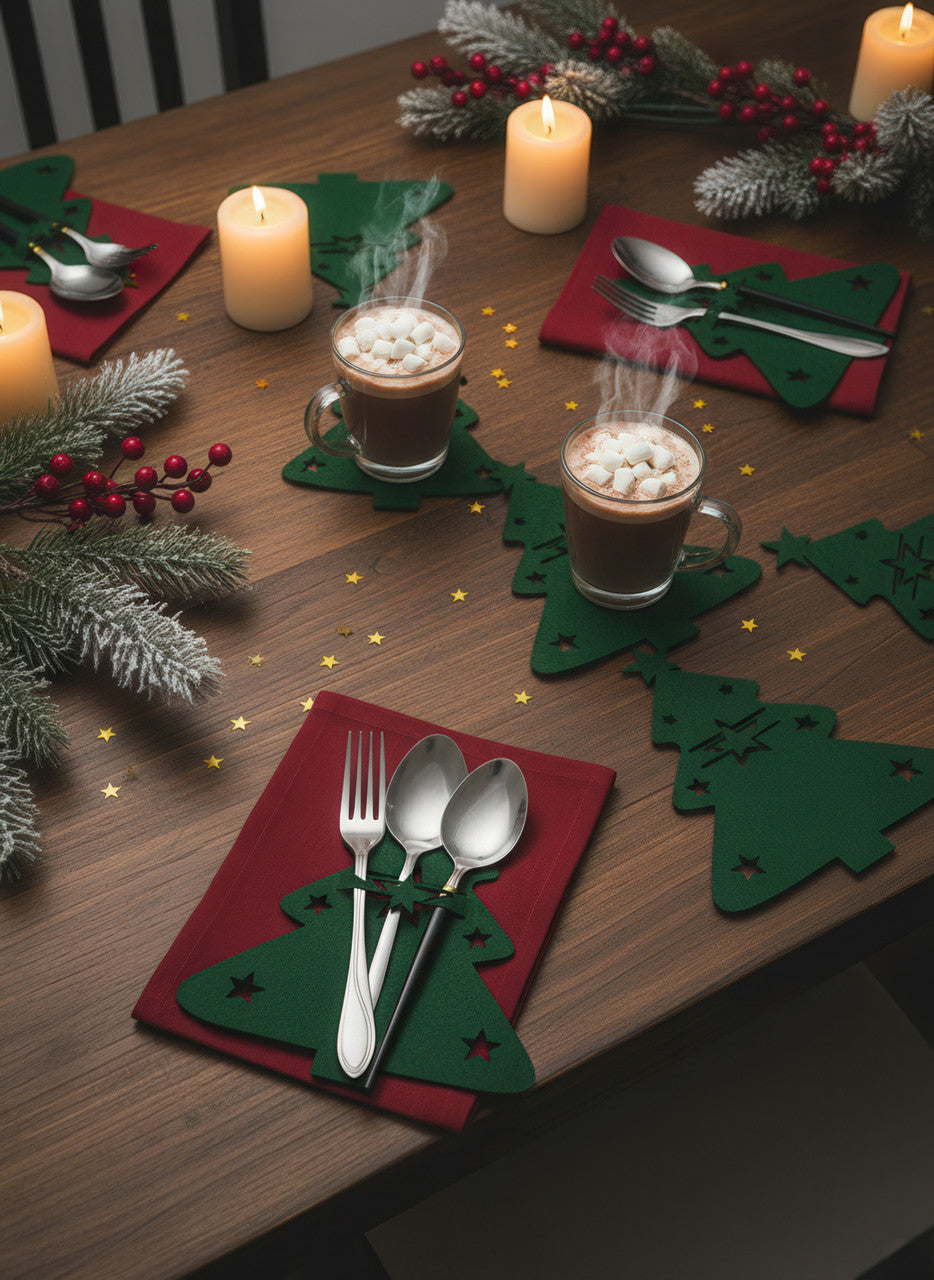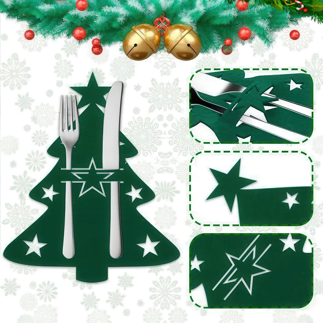 Сервірувальні конверти для столових приборів із фетру "Ялинка" 21×17 см, набір 12 штук, зелені