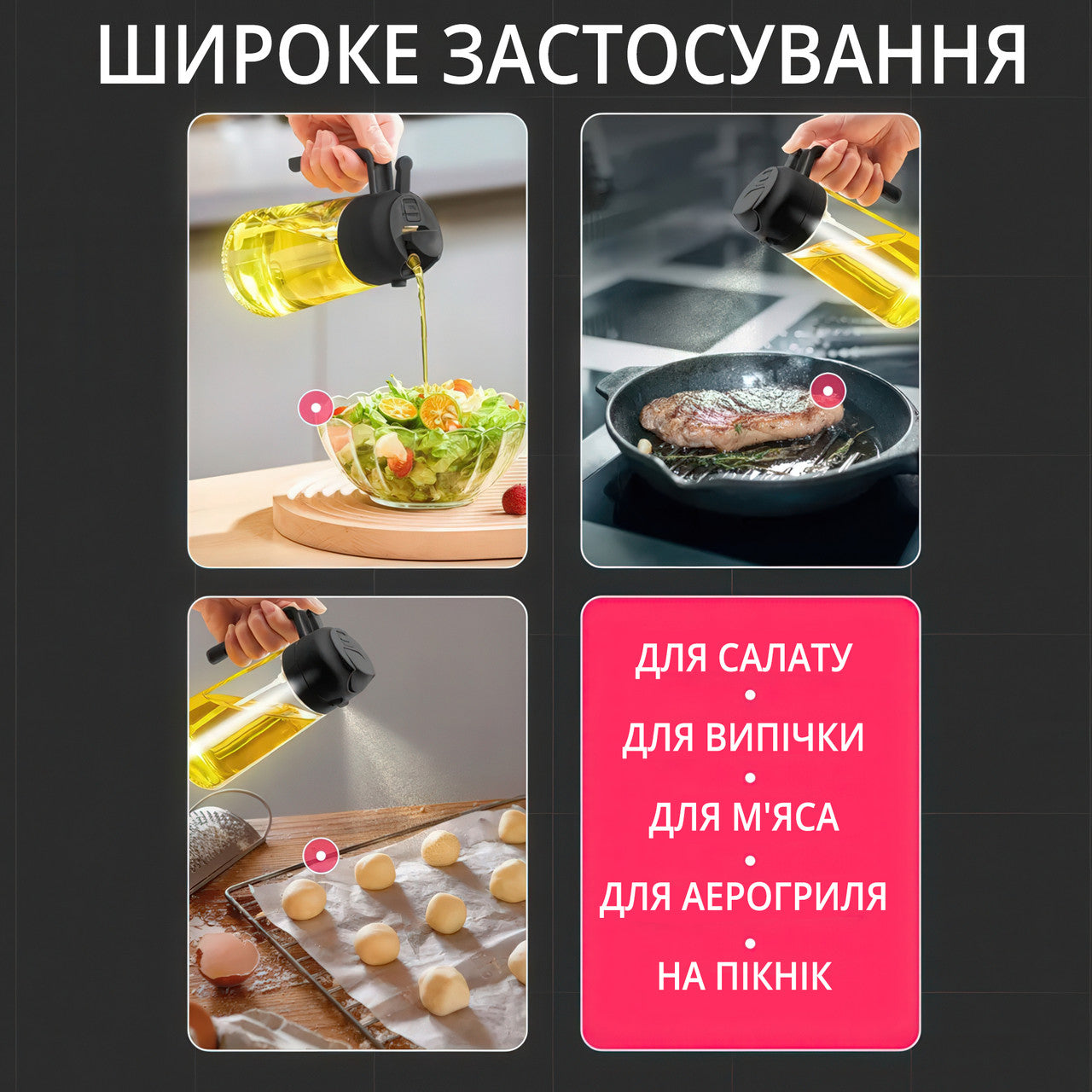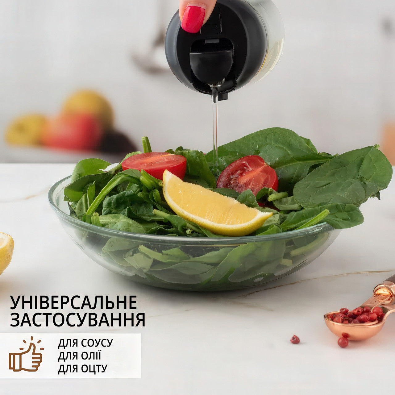 Диспенсер дозатор з розпилювачем для олії, оцту та соусів (600 мл)