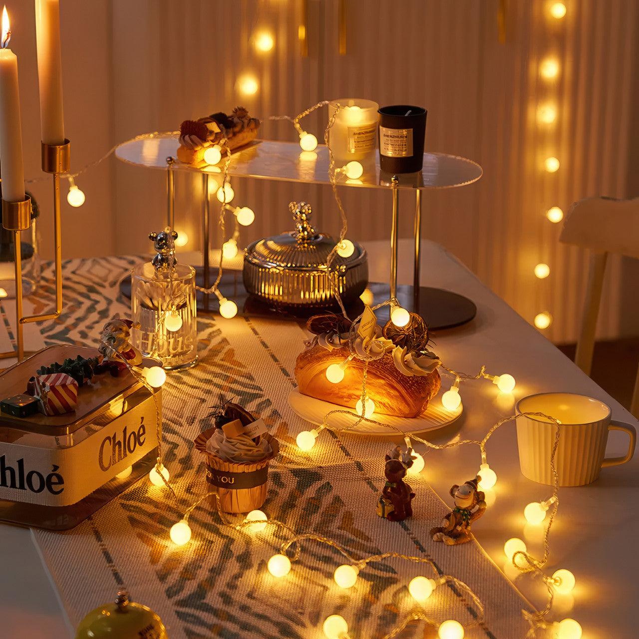 Збільшити кількість для Світлодіодна гірлянда з кульок на батарейках на 40 лампочок 6м (теплий білий)